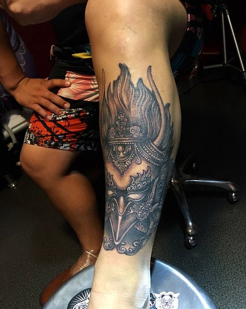 • T网红王老大花腿龙纹身图片_腿部新传统纹身图案