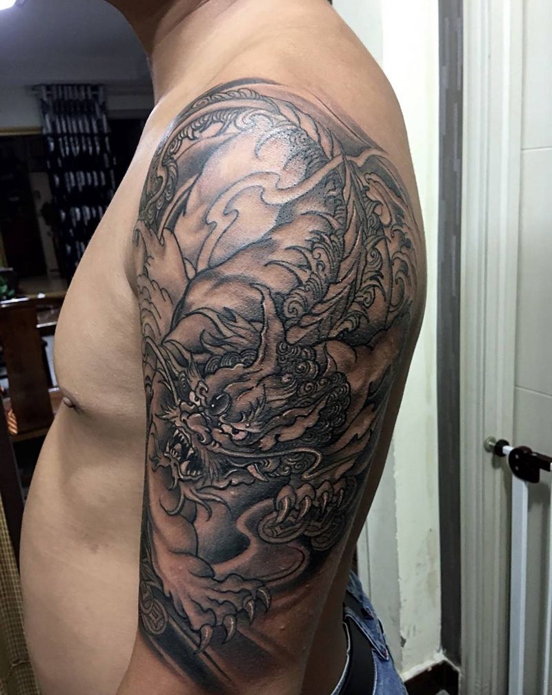当前位置: 首页 >陕西省西安市纹身店-陕西同道堂文化传播有限公司纹身图案>貔貅纹身纹身图片_成品手稿传统写实手臂鬼神动物原创纹身图案
