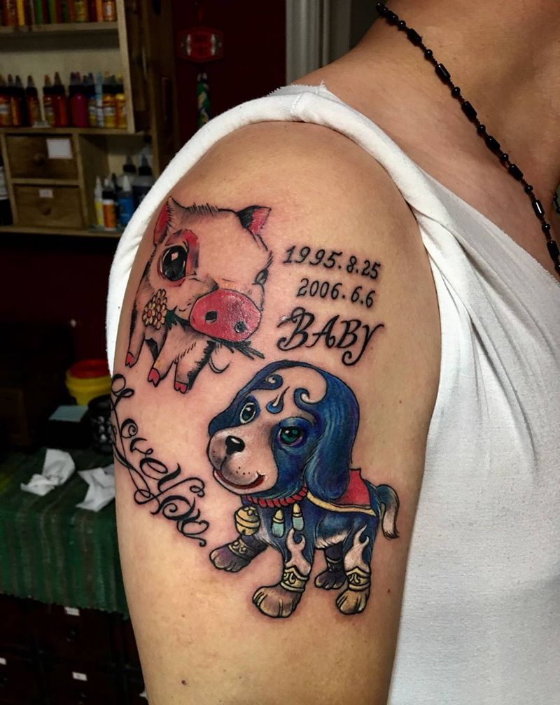 儿童属相纹身纹身图片_西安成品手稿插画清新肖像肩部动物人物原创纹身图案