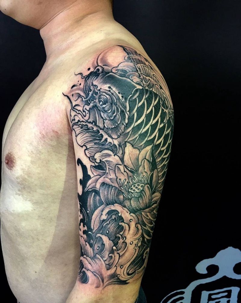 鲤鱼纹身纹身图片_修改西安成品手稿传统国画动物原创纹身图案