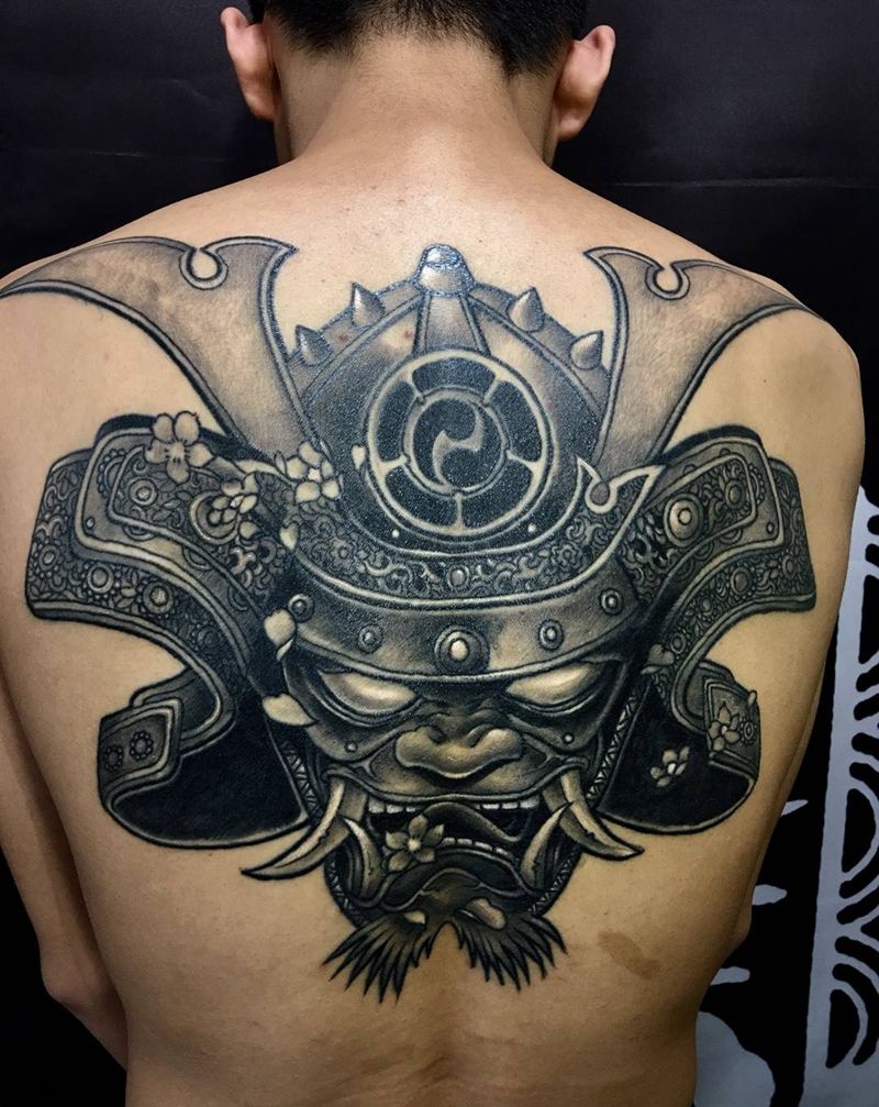 当前位置: 首页 >陕西省西安市纹身店-陕西同道堂文化传播有限公司纹身图案>鬼武士纹身图片_成品手稿插画背部传统写实人物原创鬼神纹身图案
