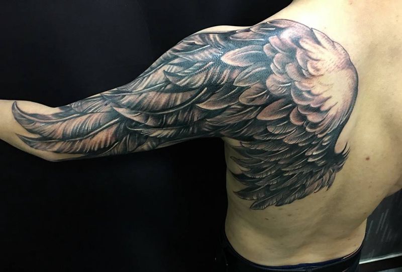 天使翅膀!纹身图片_西安修改成品手稿肩部欧美清新原创动物纹身图案