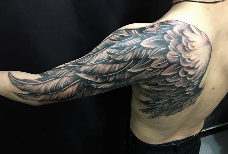 天使翅膀!纹身图片_西安修改成品手稿肩部欧美清新原创动物纹身图案