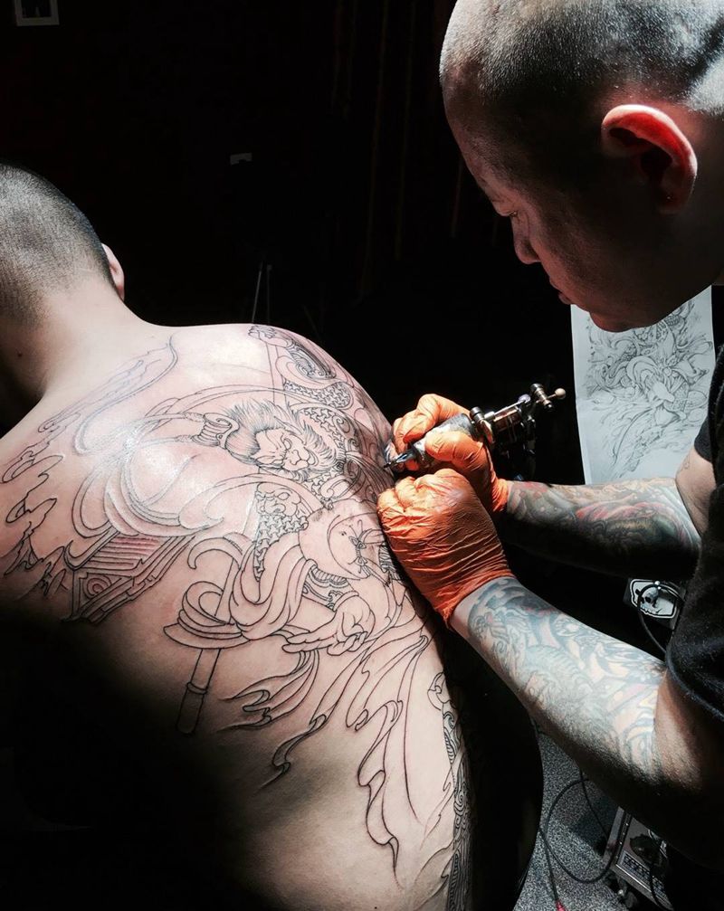 当前位置: 首页 >陕西省西安市纹身店-陕西同道堂文化传播有限公司纹身图案>斗战圣佛纹身图片_成品手稿插画背部传统国画动物鬼神原创西安纹身图案