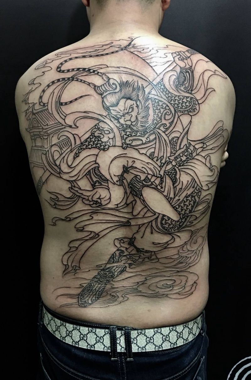 黑灰满背纹身图案