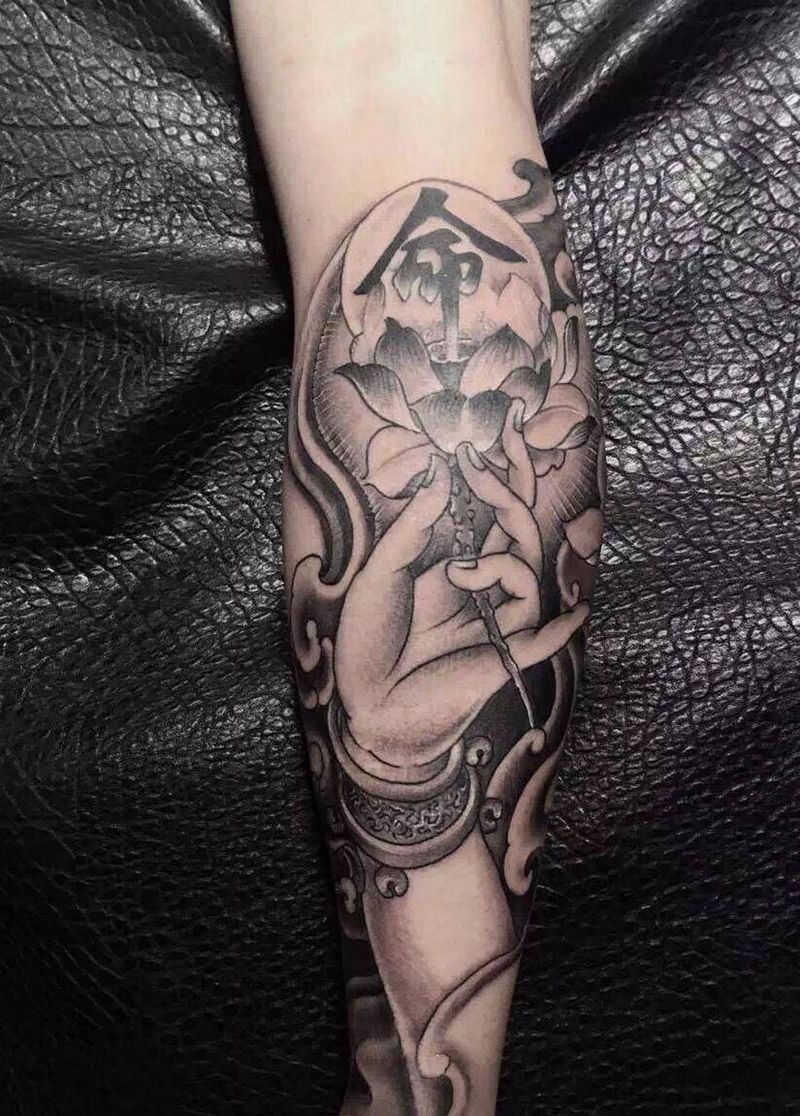一组15张莲花纹身手