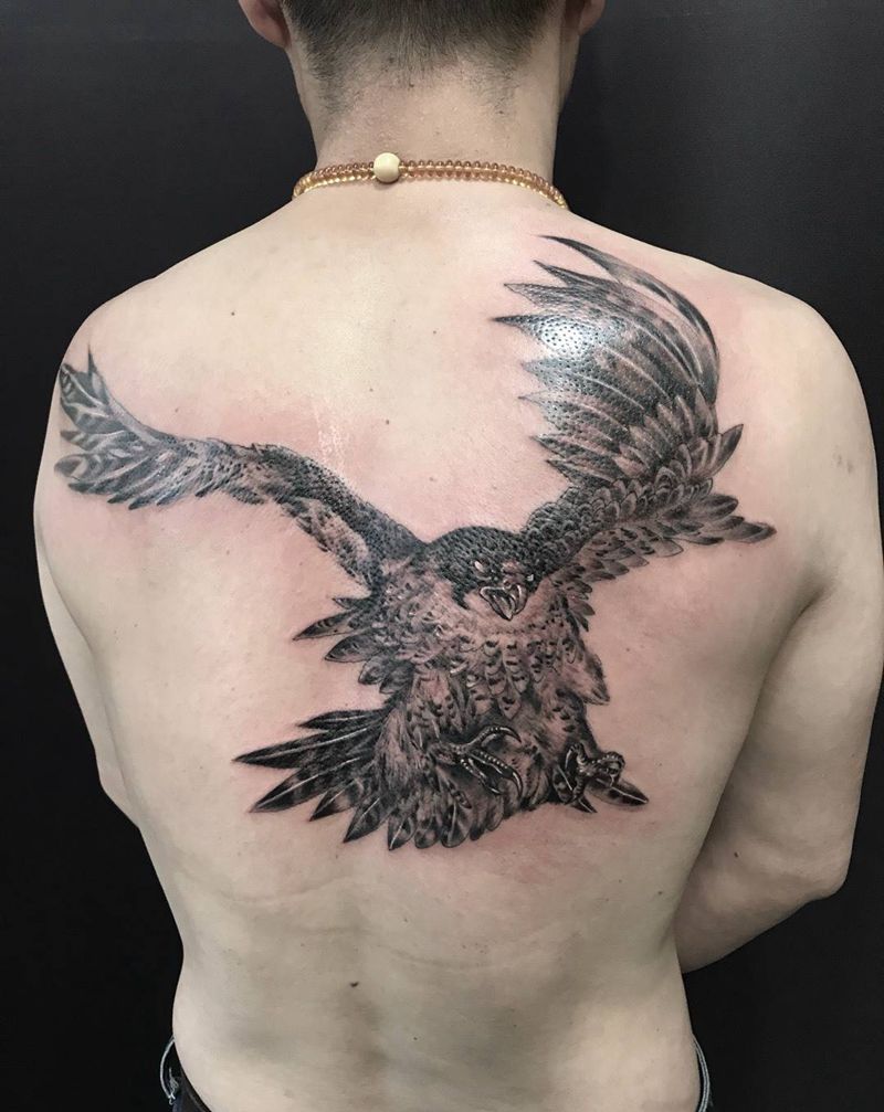 鹰隼纹身纹身图片_西安西安刺青动物原创欧美背部手稿成品纹身图案