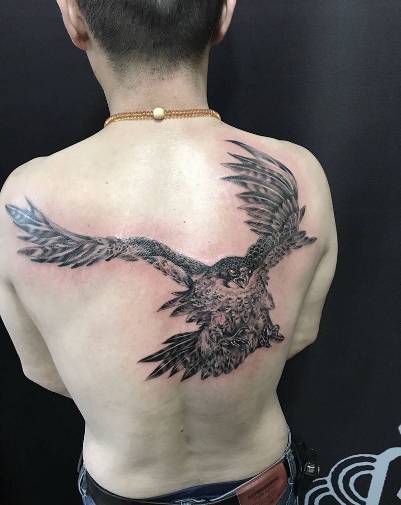 鹰隼纹身纹身图片_西安西安刺青动物原创欧美背部手稿成品纹身图案