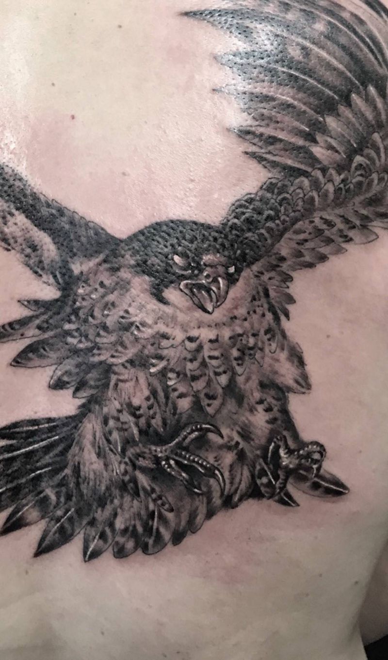 鹰隼纹身纹身图片_西安西安刺青动物原创欧美背部手稿成品纹身图案