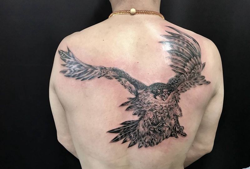 鹰隼纹身纹身图片_西安西安刺青动物原创欧美背部手稿成品纹身图案