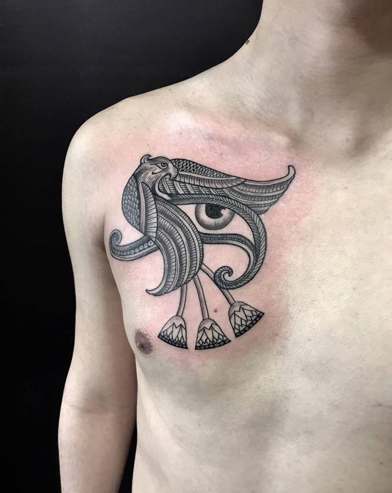 荷鲁斯之眼纹身图片_西安修改肖像成品手稿插画人物原创欧美纹身图案