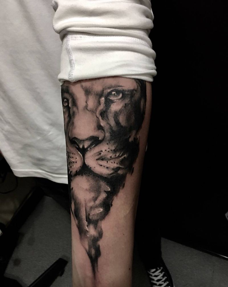 狮子纹身图片_西安手臂欧美传统肖像动物原创写实纹身图案