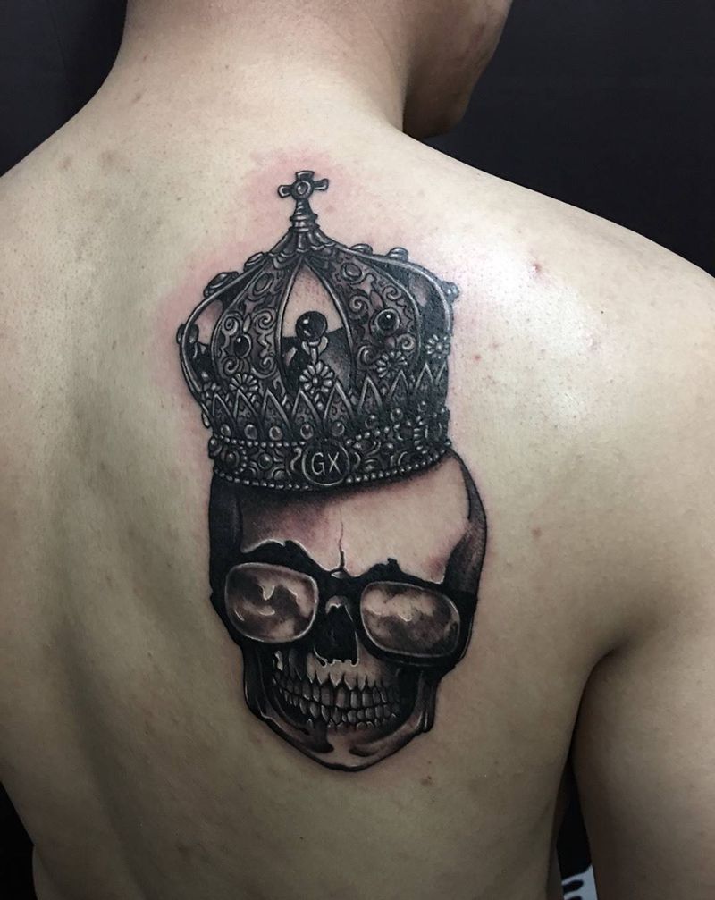 当前位置: 首页 >陕西省西安市纹身店-陕西同道堂文化传播有限公司纹身图案>骷髅纹身图片_西安修改手稿欧美肖像鬼神原创肩部纹身图案