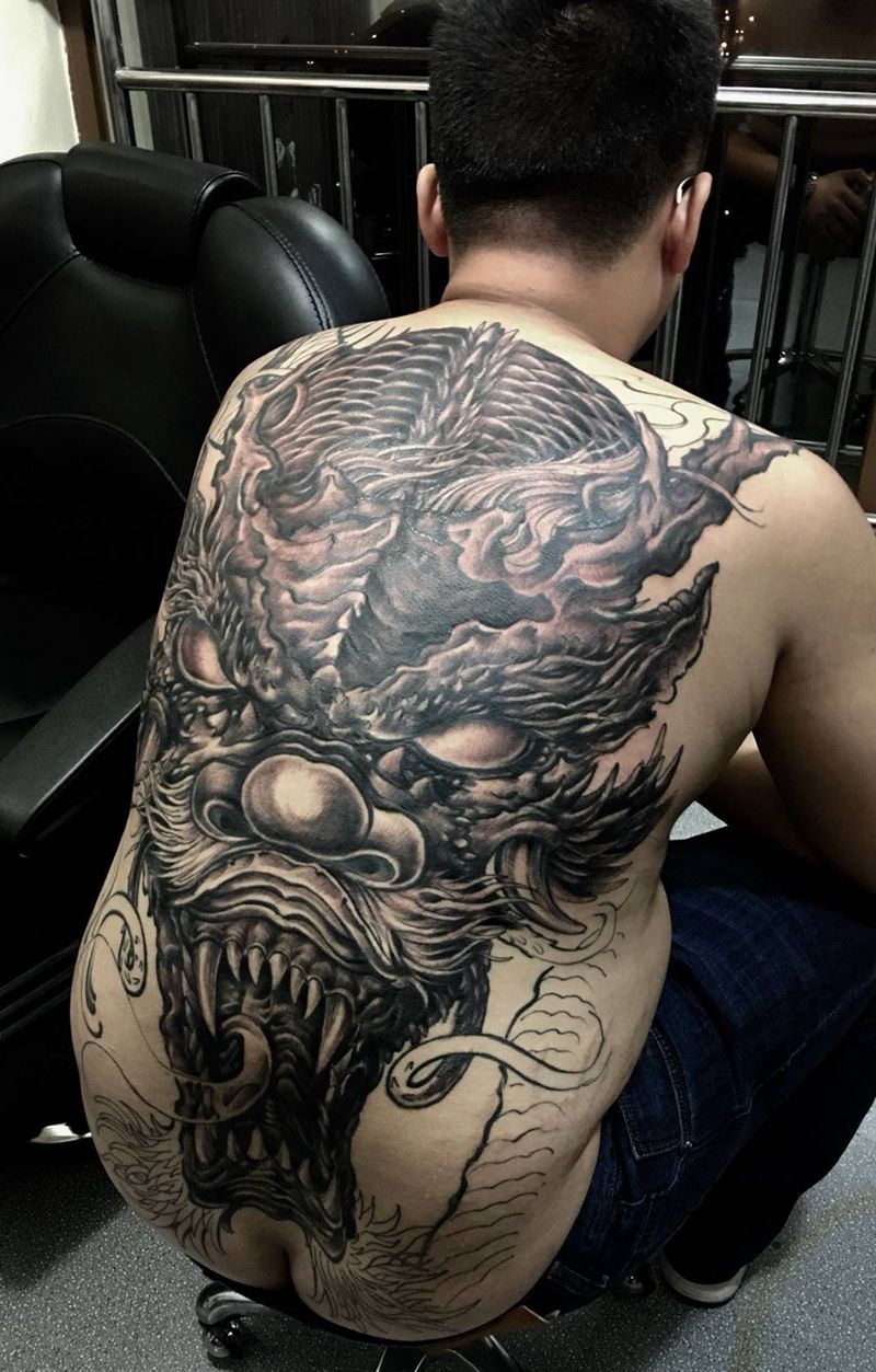 当前位置: 首页 >陕西省西安市纹身店-陕西同道堂文化传播有限公司纹身图案>神龙纹身图片_成品手稿背部传统国画动物鬼神图腾纹身图案