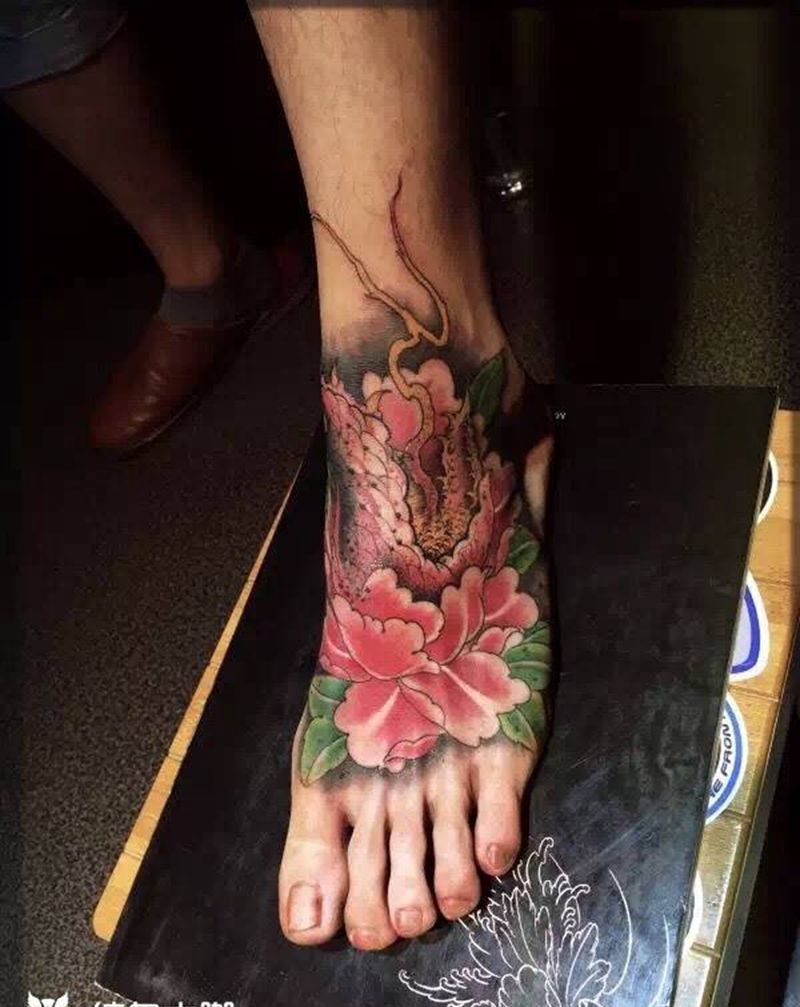 蛇盘富贵纹身图片_西安肖像修改成品手稿原创传统脚部动物纹身图案