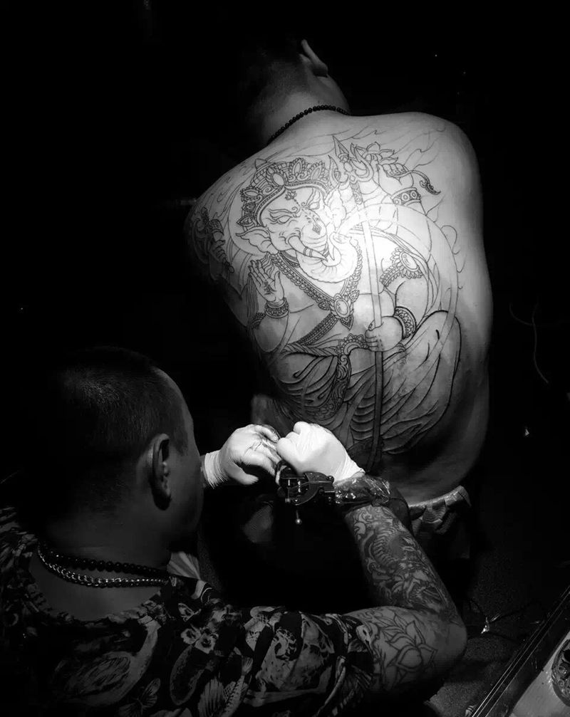 当前位置: 首页 >陕西省西安市纹身店-陕西同道堂文化传播有限公司纹身图案>象神纹身图片_修改肖像西安成品背部人物鬼神原创传统写实纹身图案