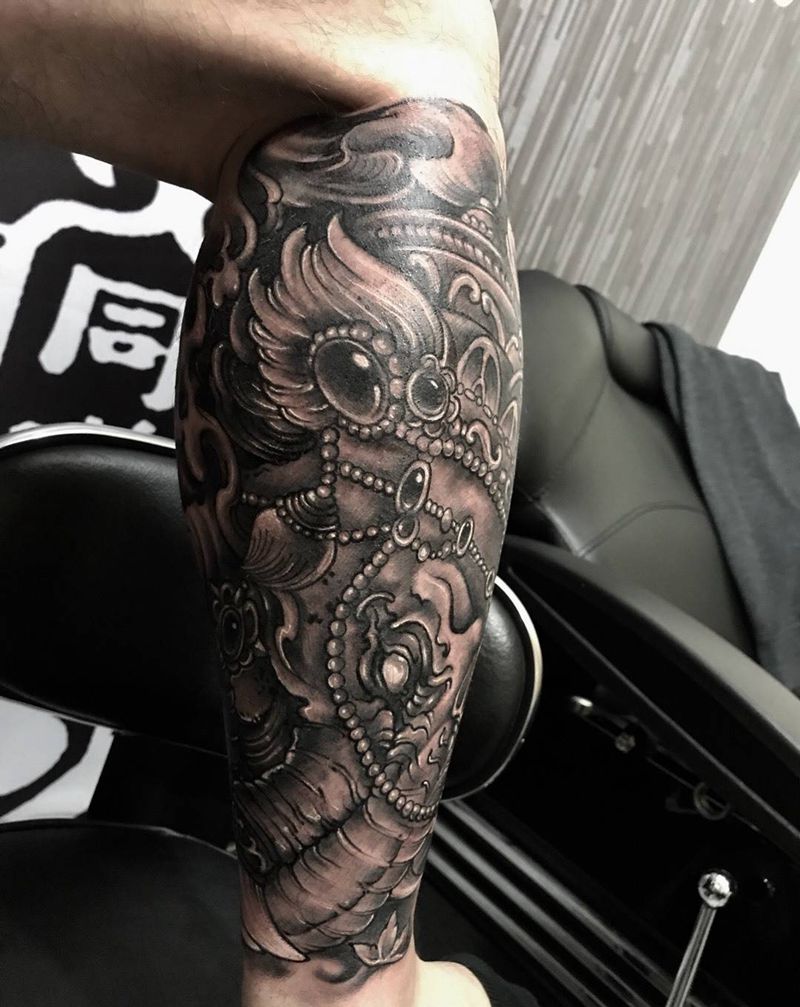 • T网红王老大花腿龙纹身图片_腿部新传统纹身图案