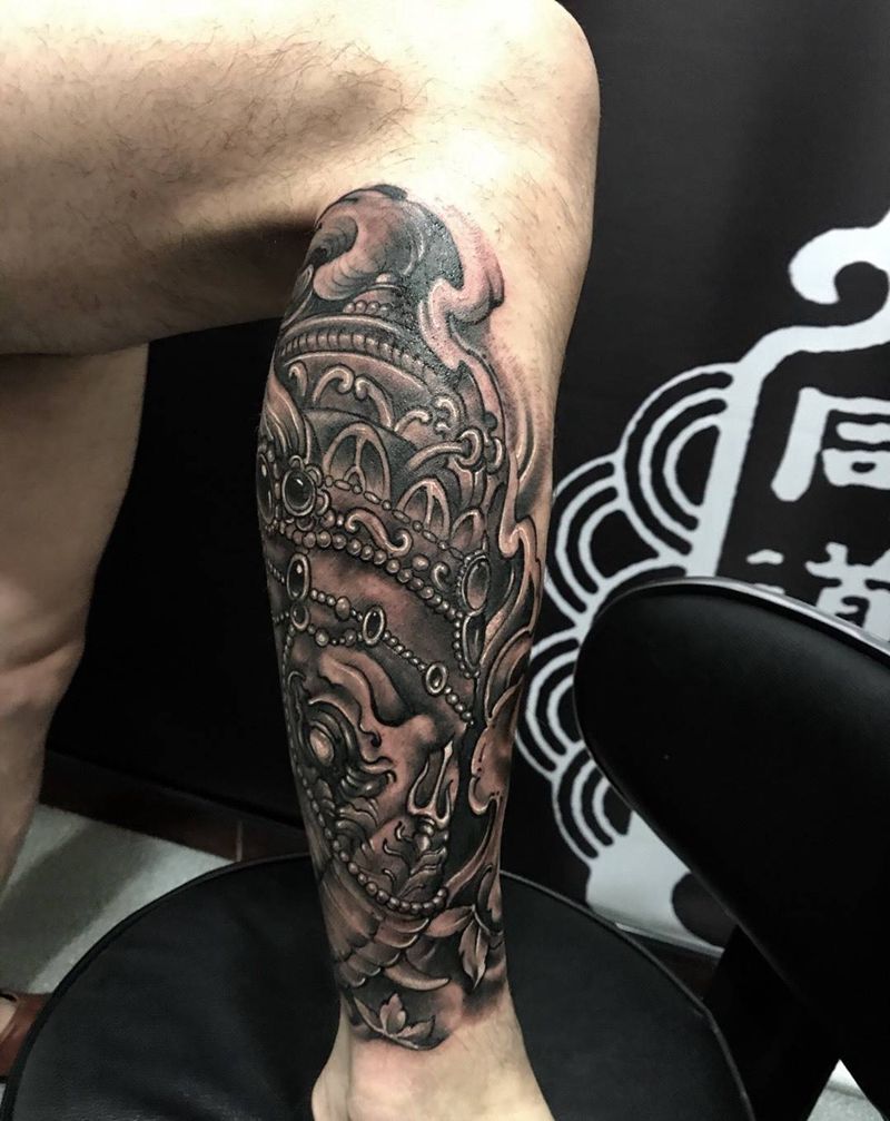 • T网红王老大花腿龙纹身图片_腿部新传统纹身图案