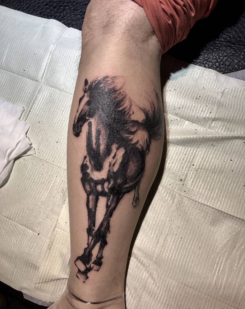当前位置: 首页 >陕西省西安市纹身店-陕西同道堂文化传播有限公司纹身图案>奔马图纹身图片_西安修改动物国画原创纹身图案