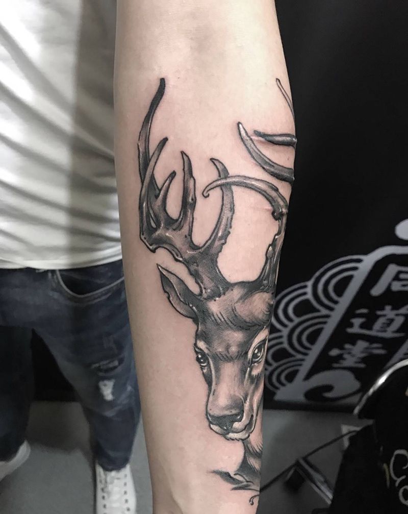 当前位置: 首页 >陕西省西安市纹身店-陕西同道堂文化传播有限公司纹身图案>遮盖刀疤!纹身图片_小西安修改动物原创手稿成品手臂纹身图案