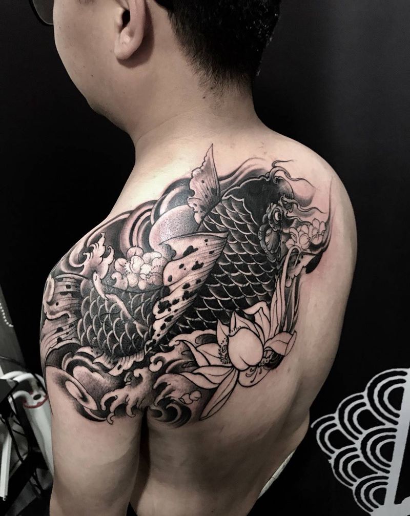 遮盖纹身鱼纹身图片_西安修改西安刺青小清新人物原创动物成品肩部纹身图案
