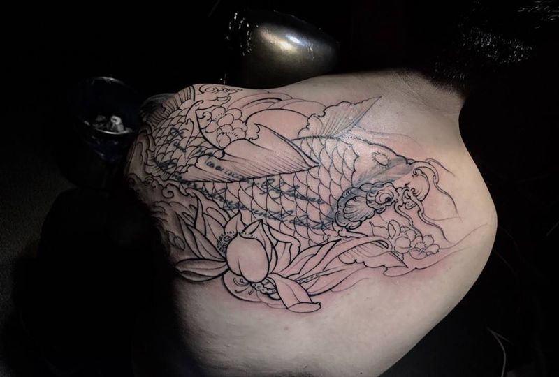 遮盖纹身鱼纹身图片_西安修改西安刺青小清新人物原创动物成品肩部纹身图案