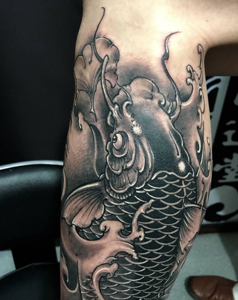 鲤鱼纹身纹身图片_西安刺青西安修改肖像动物原创鬼神腿部手稿成品纹身图案