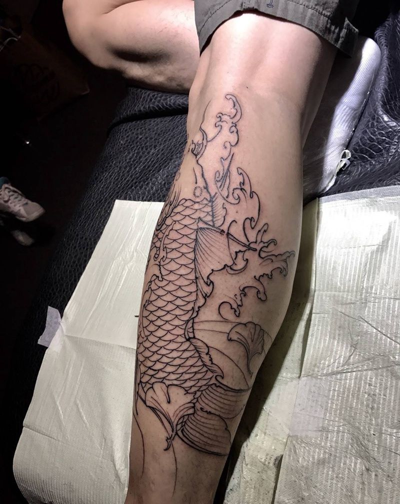 鲤鱼纹身纹身图片_西安刺青西安修改肖像动物原创鬼神腿部手稿成品纹身图案