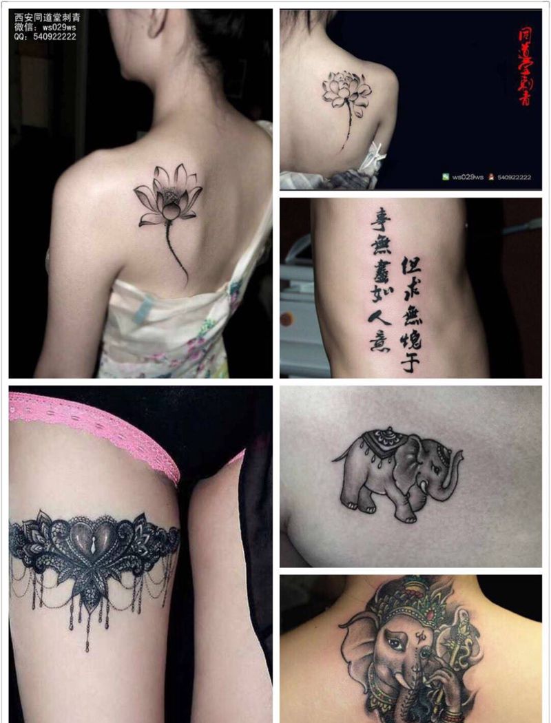 一组15张莲花纹身手