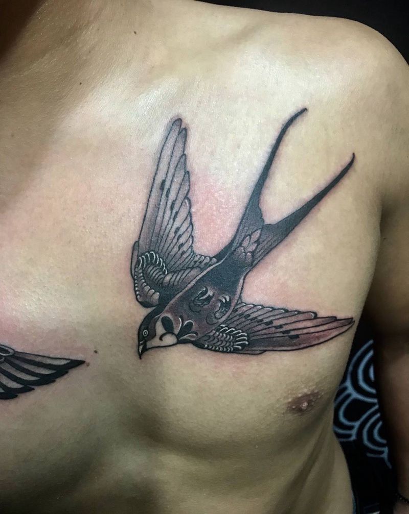 燕子纹身图片_西安小西安刺青清新动物传统成品手稿胸部国画纹身图案