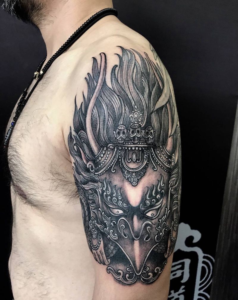 • 纹身吧推荐的披肩图腾半胛纹身图案作品展示