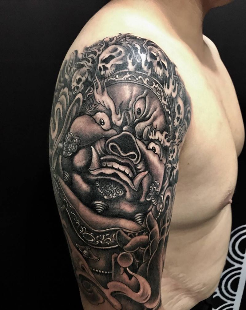 大黑天财神纹身图片_西安西安刺青修改小人物鬼神传统手臂成品手稿纹身图案
