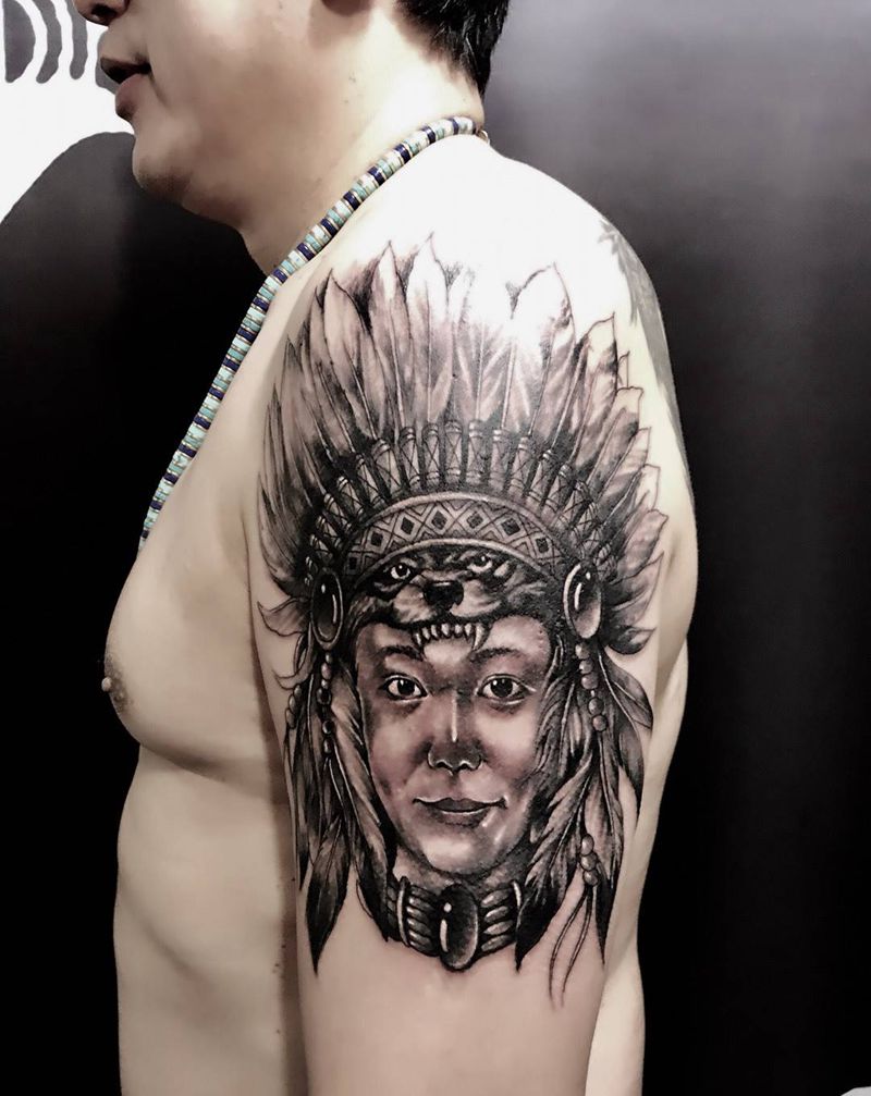 • 纹身吧推荐的披肩图腾半胛纹身图案作品展示
