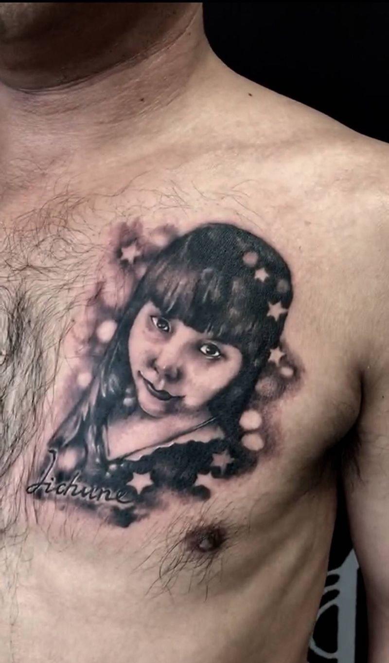 纪念肖像纹身纹身图片_人物原创西安西安刺青国画胸部成品手稿肖像纹身图案