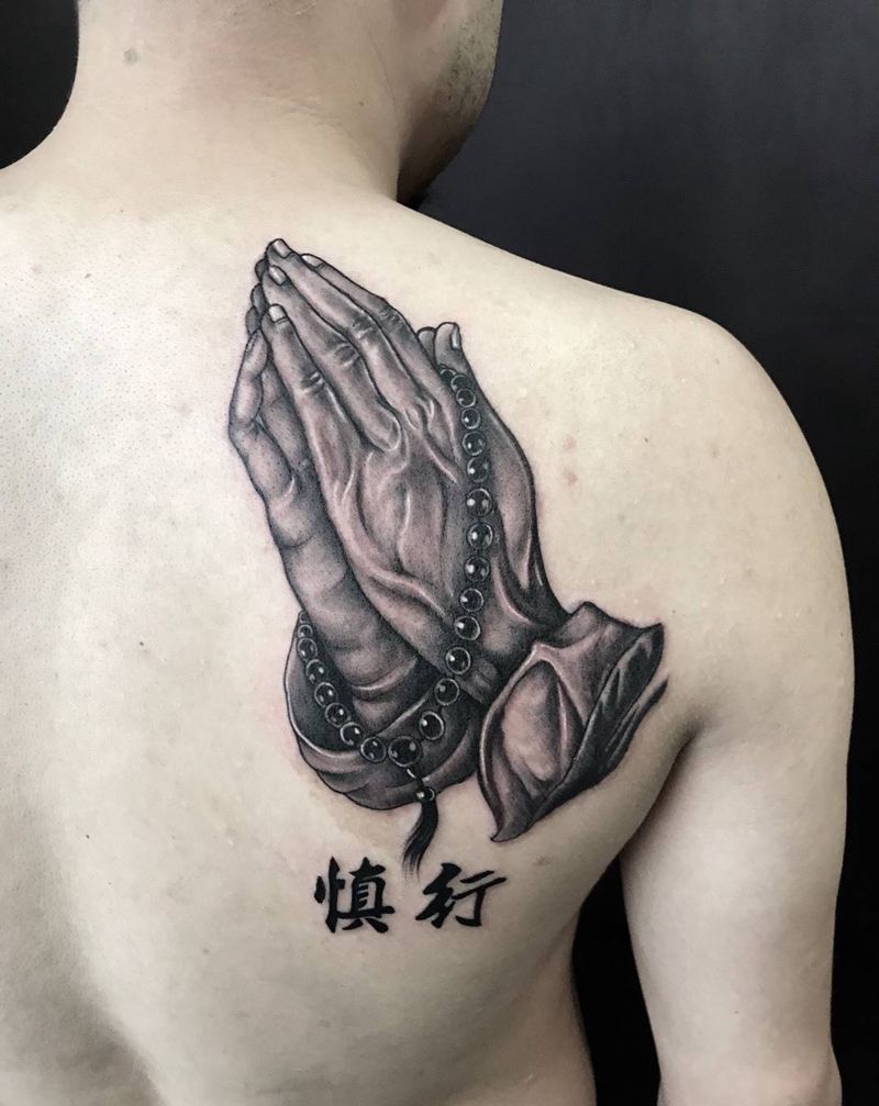 虔诚之手纹身纹身图片_西安刺青西安欧美写实肖像原创手稿背部小修改纹身图案
