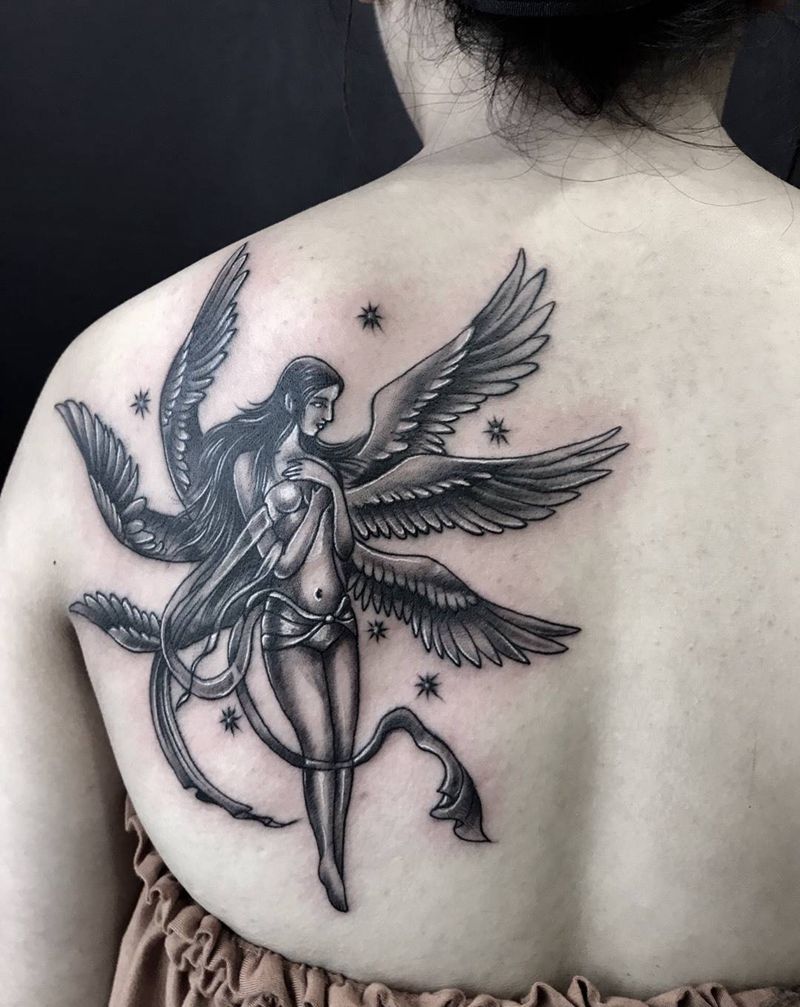 六翅天使纹身图片_西安刺青修改西安背部手稿成品欧美人物原创纹身图案