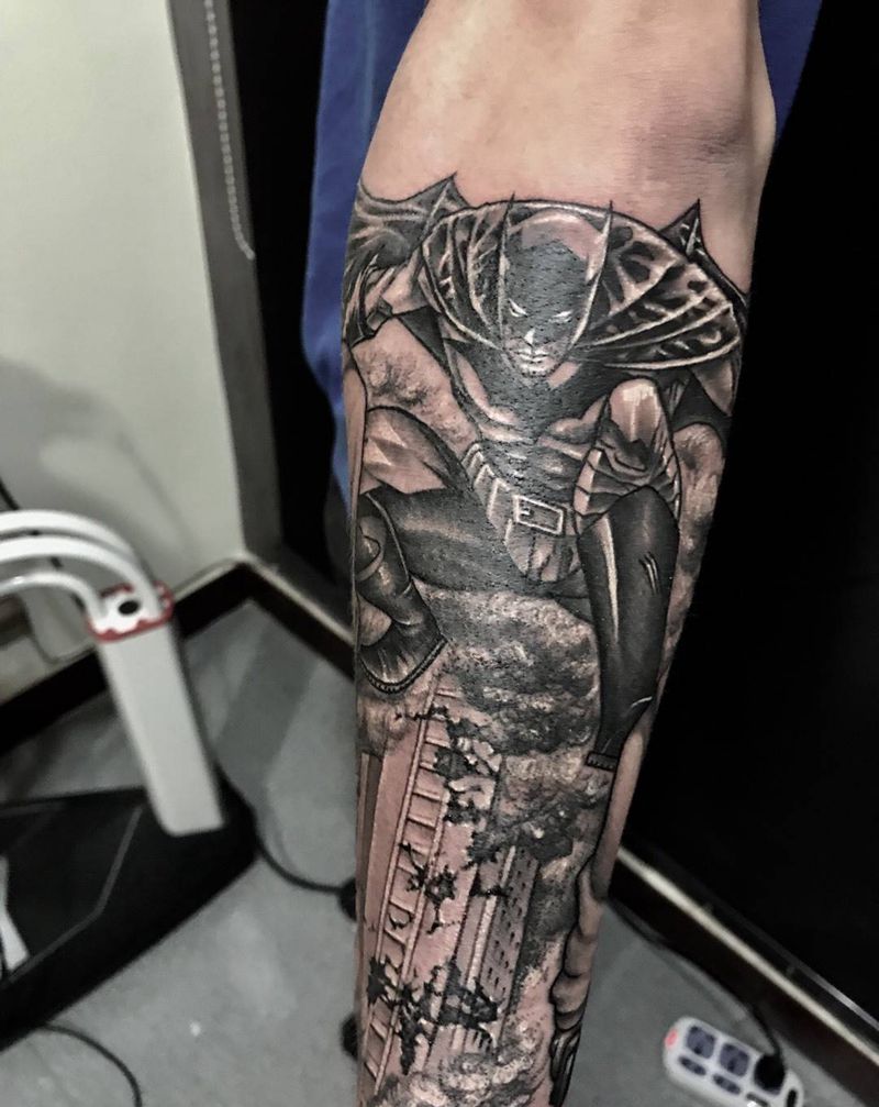 包小臂小丑纹身纹身图片_西安小肖像西安刺青英文欧美手臂原创成品纹身图案