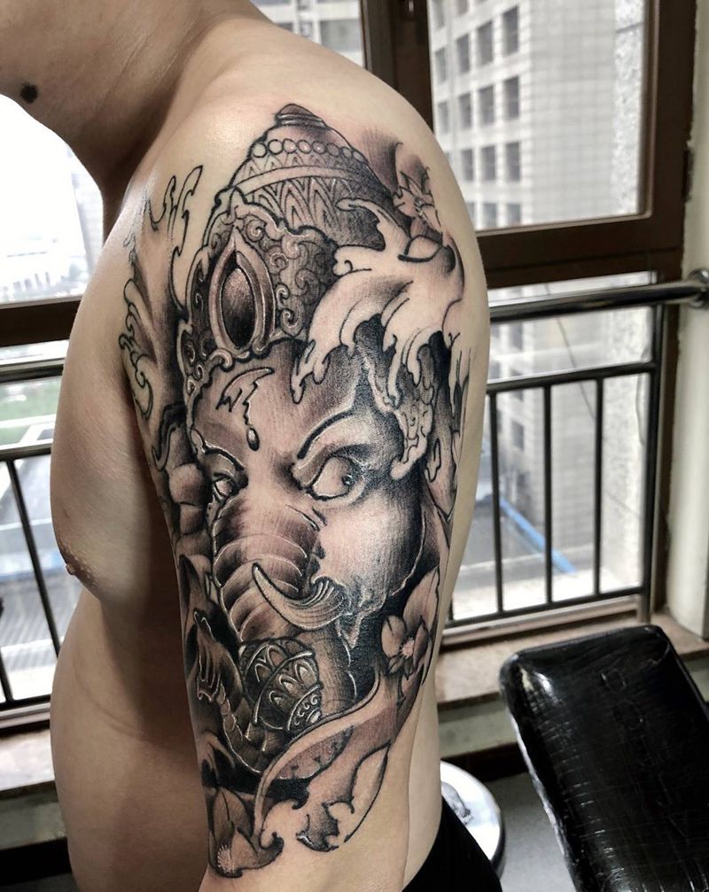 当前位置: 首页 >陕西省西安市纹身店-陕西同道堂文化传播有限公司纹身图案>象神纹身图片_西安刺青西安西安改鬼神图腾传统手臂手稿成品纹身图案