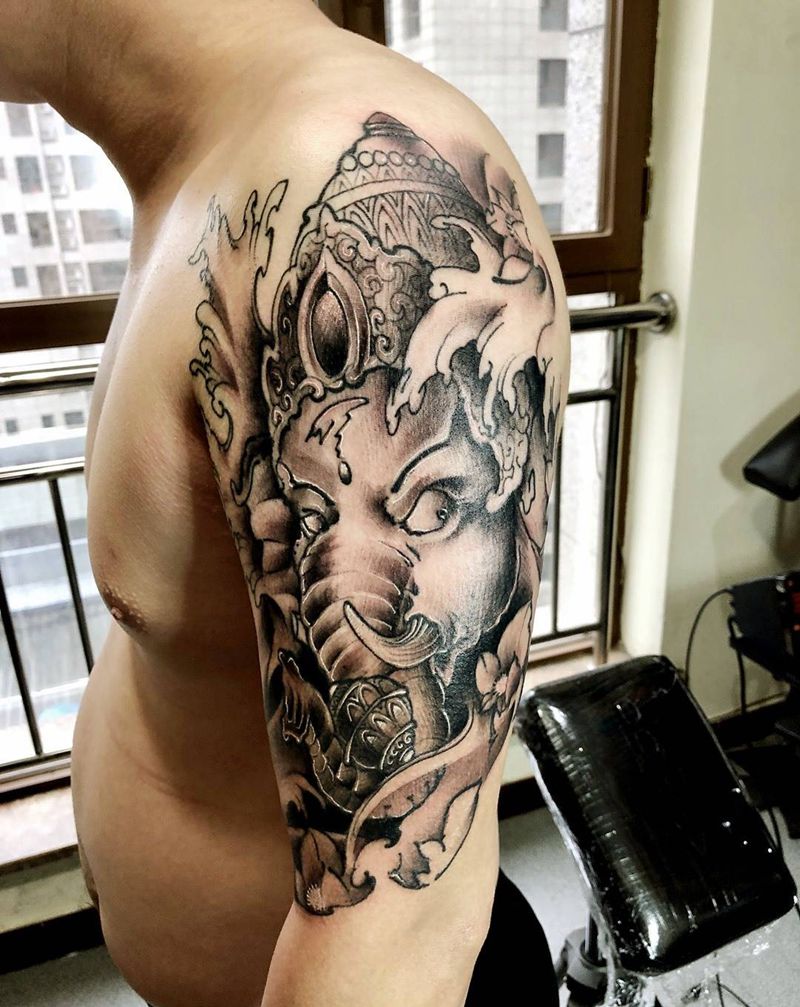 当前位置: 首页 >陕西省西安市纹身店-陕西同道堂文化传播有限公司纹身图案>象神纹身图片_西安刺青西安西安改鬼神图腾传统手臂手稿成品纹身图案
