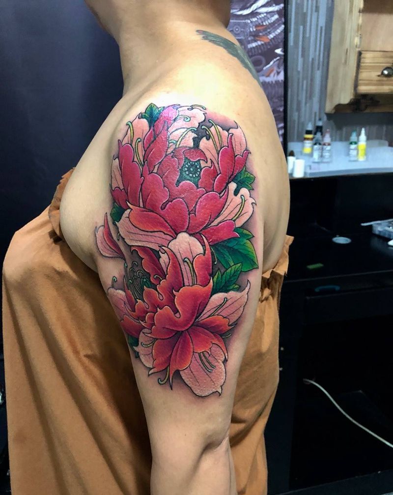牡丹花纹身纹身图片_西安西安刺青西安改植物传统国画手臂手稿成品原创纹身图案