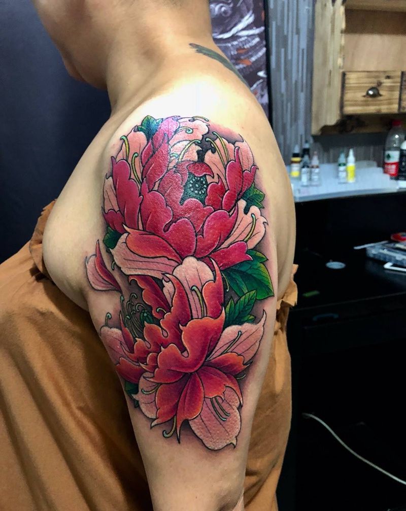 牡丹花纹身纹身图片_西安西安刺青西安改植物传统国画手臂手稿成品原创纹身图案