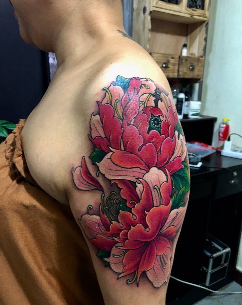 牡丹花纹身纹身图片_西安西安刺青西安改植物传统国画手臂手稿成品原创纹身图案