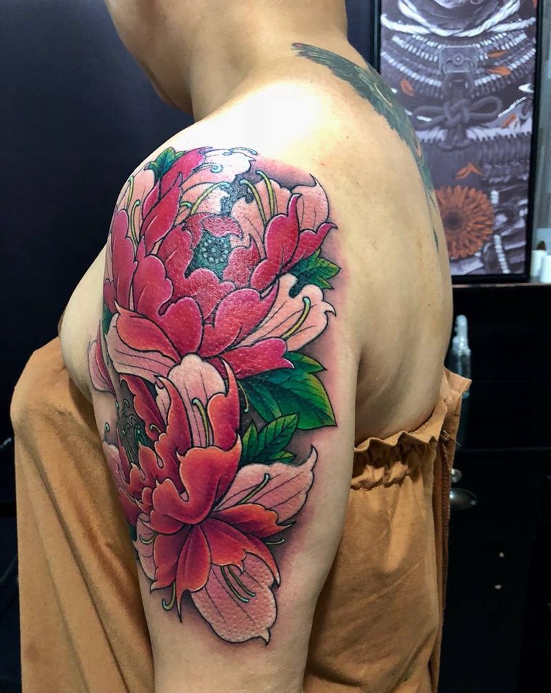 牡丹花纹身纹身图片_西安西安刺青西安改植物传统国画手臂手稿成品原创纹身图案