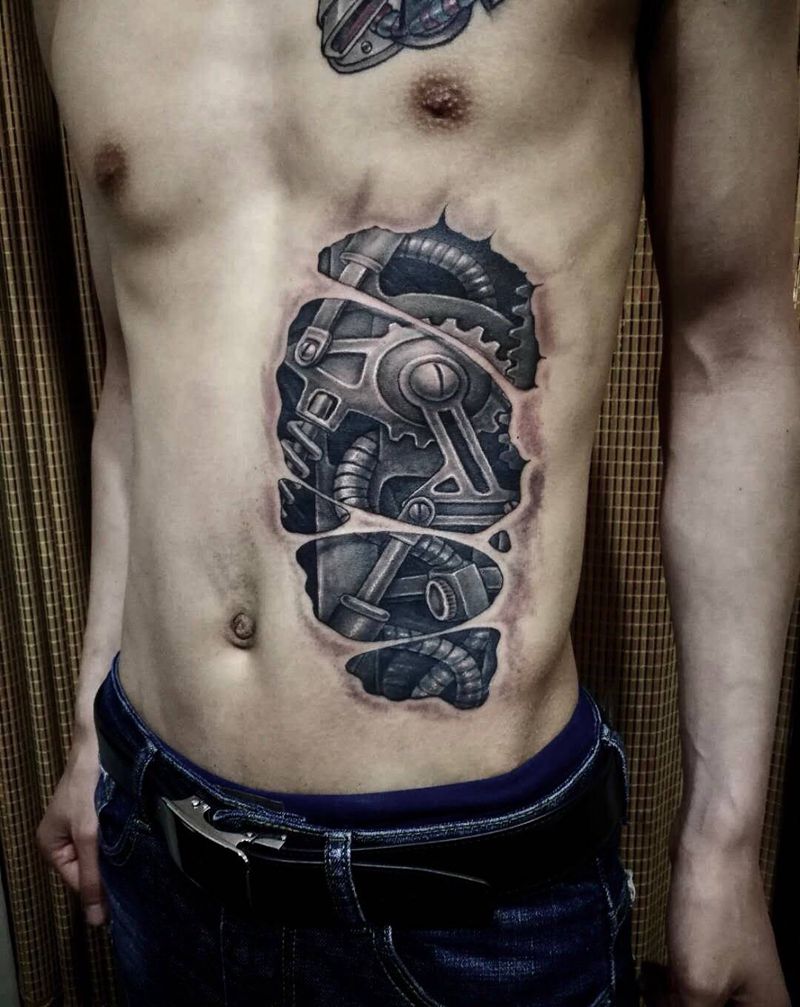 机械图纹身图片_西安刺青西安改西安欧美腹部胸部成品手稿纹身图案