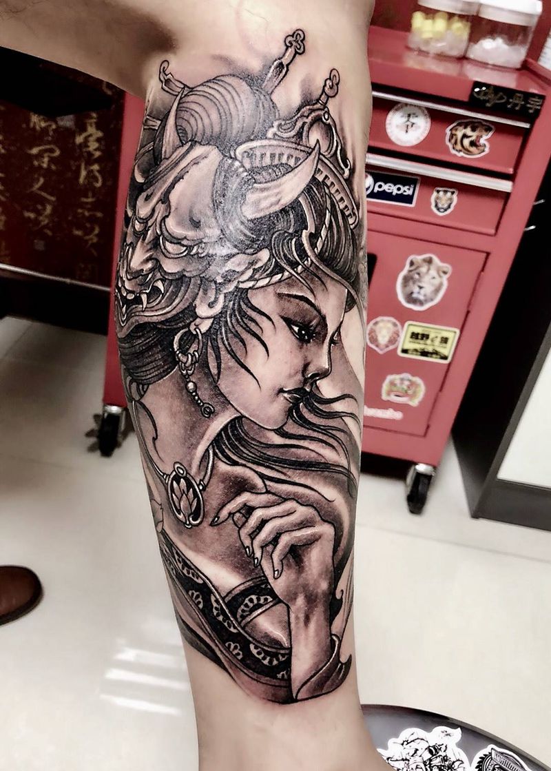 当前位置: 首页 >陕西省西安市纹身店-陕西同道堂文化传播有限公司纹身图案>艺妓纹身纹身图片_西安刺青西安西安改欧美传统人物脚部成品纹身图案
