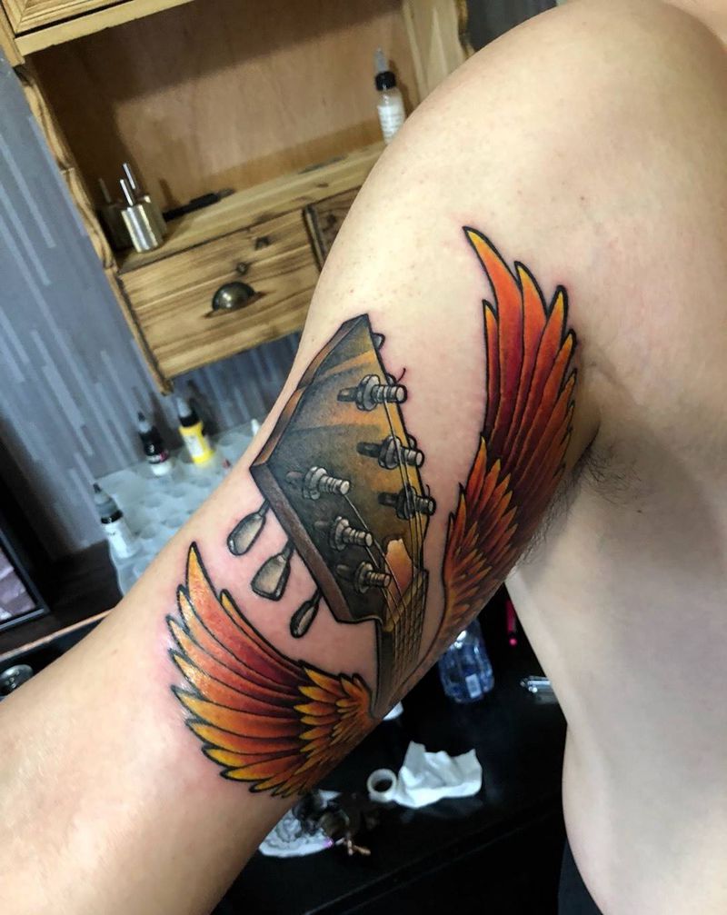 当前位置: 首页 >陕西省西安市纹身店-陕西同道堂文化传播有限公司纹身图案>吉他翅膀!纹身图片_西安刺青西安西安改原创欧美传统手臂手稿成品纹身图案