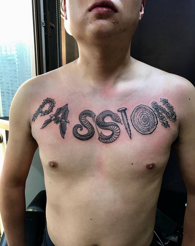 花胸字体纹身图片_西安刺青西安西安改几何字符动物欧美胸部成品手稿纹身图案