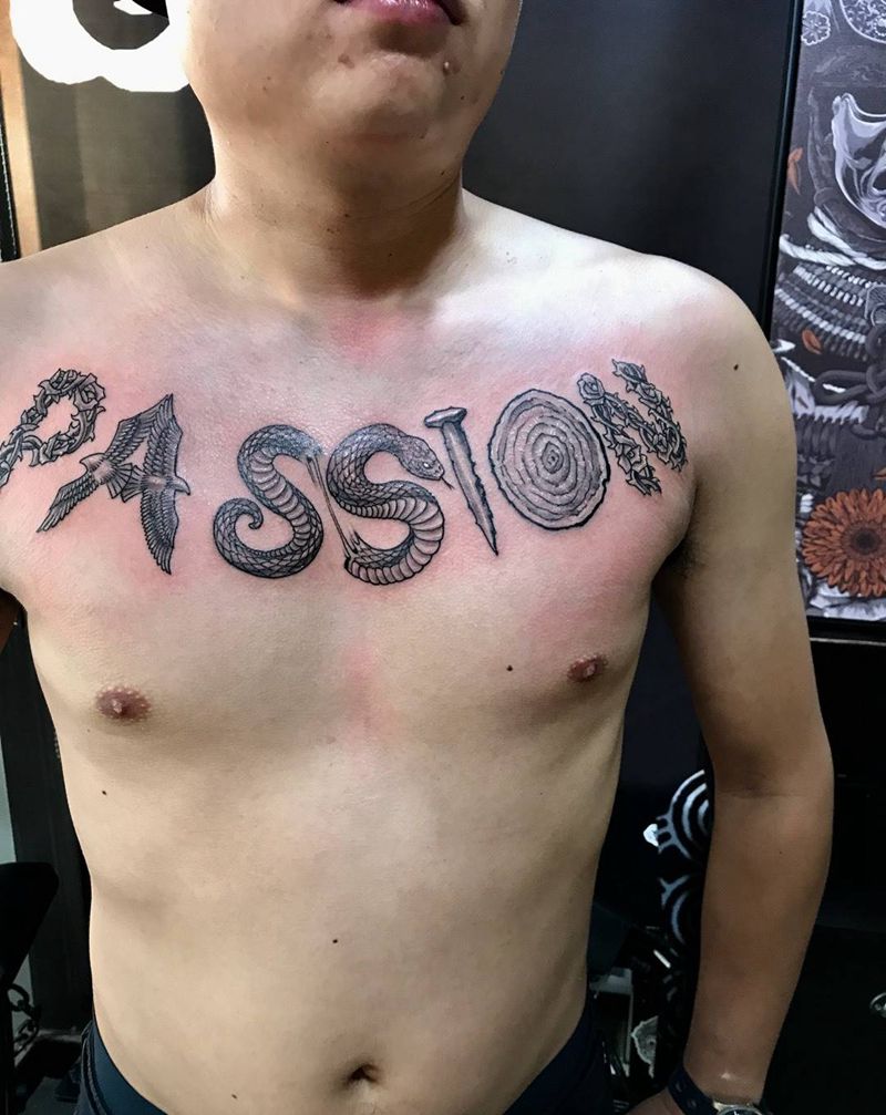 花胸字体纹身图片_西安刺青西安西安改几何字符动物欧美胸部成品手稿纹身图案