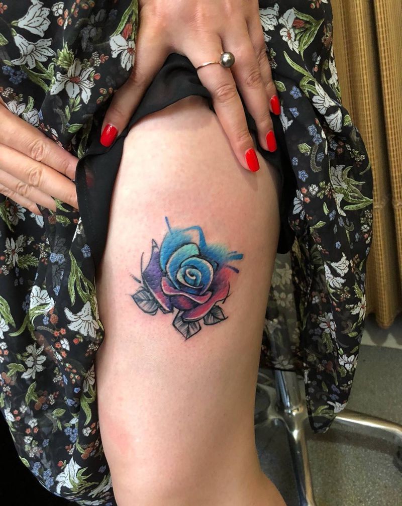• T网红王老大花腿龙纹身图片_腿部新传统纹身图案