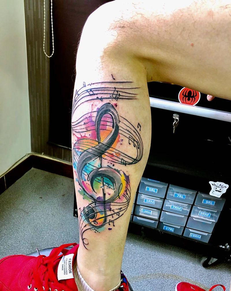 高音符号!纹身纹身图片_西安西安刺青西安改图腾原创欧美脚部手稿成品插画纹身图案